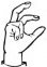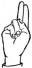 На ћирилици написано ВАЛЕНТИНА БЕЛЕНЗАДА састоји се из 18 слова [?]. Исписано ћириличном једноручном азбуком за глувонеме: